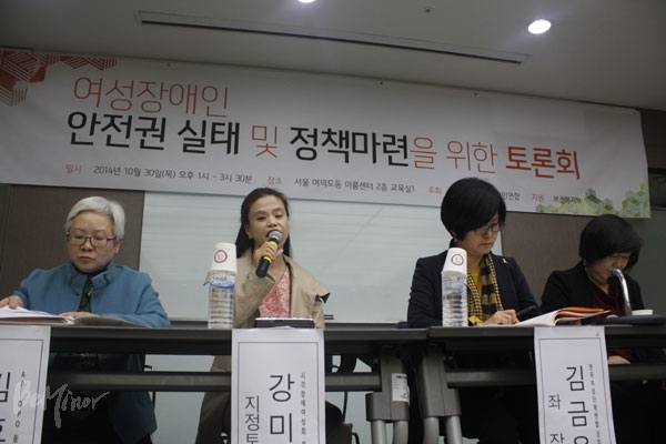 시각장애인여성회 강미애 부대표는 어느 날 새벽에 성추행당했던 경험을 토로하며 눈물을 쏟았다.