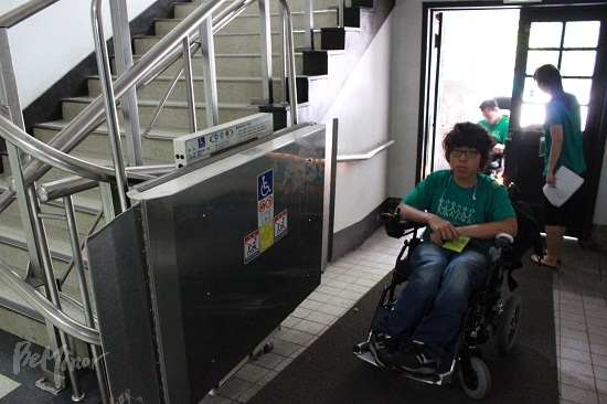 ![]() ▲엘리베이터 대신 리프트가 설치돼 있는 문과대 서관. |
