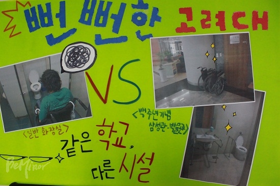"외관을 보고 '이 대학은 정말 좋은 대학이구나'라는 생각이 절로 들었어요. 하지만 직접 장애인편의시설 실태를 조사해보니 껍데기일 뿐 실은 '아무것도 없구나'라는 것을 알게 됐어요."