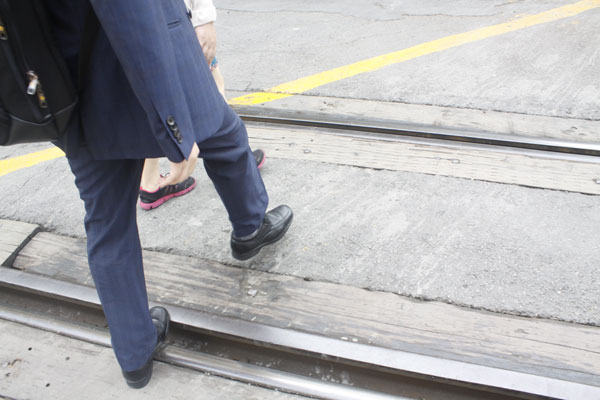 서대문을 지났을 때쯤 인도 한복판은 공사 중이었다. 인도 위로 공사 중임을 알리는 표지판과 콘이 세워져 있었고 콘과 콘 사이는 얇은 막대기로 바리케이드가 설치되어 있었다. 바리케이드를 넘어야만 지나갈 수 있었다. 그와 동료는 잠시 그 앞에서 머뭇거렸다. 동료가 먼저 넘어간 뒤 그에게 상황 설명을 한다. 설명을 들던 그도 잠시 후 바리케이드를 아슬아슬하게 넘는다. 만약 그가 혼자 가던 중이었다면 이곳을 어떻게 지나갔을까?