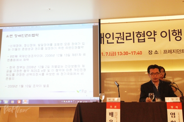 7일 국가인권위원회(아래 인권위)가 개최한 유엔장애인권리협약 이행 강화를 위한 토론회에서 공익인권법재단 염형국 변호사는 장애인권리협약과 최종 견해의 이행을 위해 개정되어야 할 국내 법제를 제시했다.