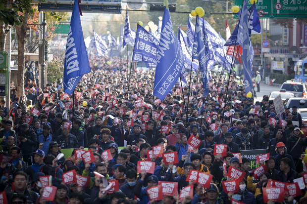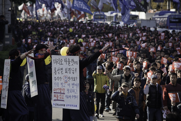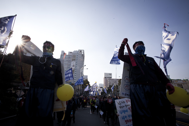 ![]() ▲3만여 노동자들은 을지로1가에서 대학로까지 1시간 40분간 사전 행진을 진행했다. ⓒ참세상 |