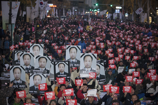 민주노총은 9일 오후 4시, 서울 대학로에서 ‘44주년 전태일 열사 정신계승! 2014 전국노동자대회’를 개최했다. 이 자리에는 약 3만 명 이상에 달하는 노동자들과 연대단위 등이 참석했다. 본대회에 앞서 3만 명의 노동자들은 서울 청계광장에 집결해 을지로입구와 종로5가를 거쳐 집회가 열리는 대학로까지 도심 행진을 진행했다. 참가자들은 ‘박근혜 정권 퇴진’ 피켓과 7일 사망한 압구정 신현대아파트 경비노동자 이만수 열사의 영정을 들고 행진을 진행했다.