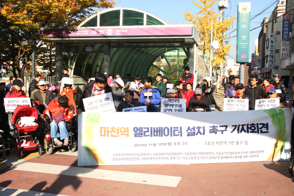 광화문역, 보문역 등에서 엘리베이터를 설치하라는 장애인 등 교통약자들의 요구에 이어, 5호선 마천역 근처 주민과 장애인·시민단체들도 마천역 엘리베이터 설치를 촉구했다.