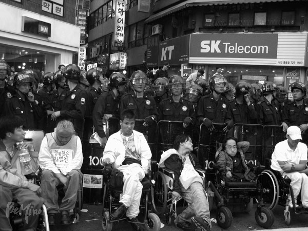 하지만 사람들이 청계천을 ‘차별천’으로 받아들이는 데 그리 오랜 시간이 흐르지 않았습니다. 청계천은 복원되었지만 그만큼의 대가도 가혹했습니다. 주변의 영세상인들과 노점상 그리고 세입자들은 삶에 보금자리를 잃고 어디론가 떠나야 했습니다. 결국 모두들 청계천 복원공사를 앞두고 환호할 때 차별천이라 외쳤던 장애인들의 주장이 맞았던 것입니다. 당신들이 살아온 삶의 직관이 이대로라면 청계천은 장애인뿐 아니라 누구에게도 차별천이 될 것이라고 먼저 깨달았던 것은 아닌지요. 아쉽게도 이처럼 미네르바의 부엉이는 황혼이 저물어야 그 날개를 펴는가 봅니다.