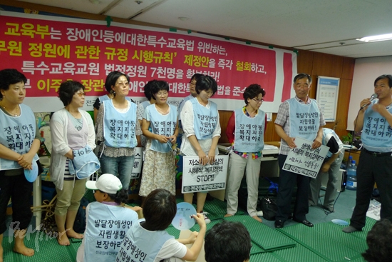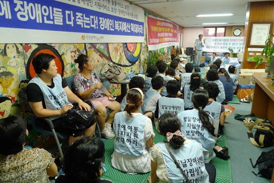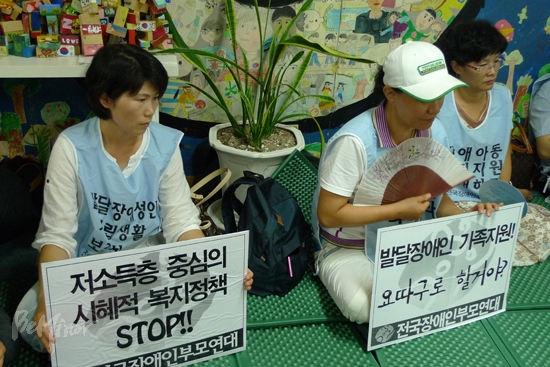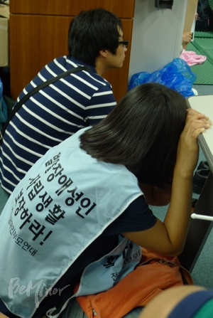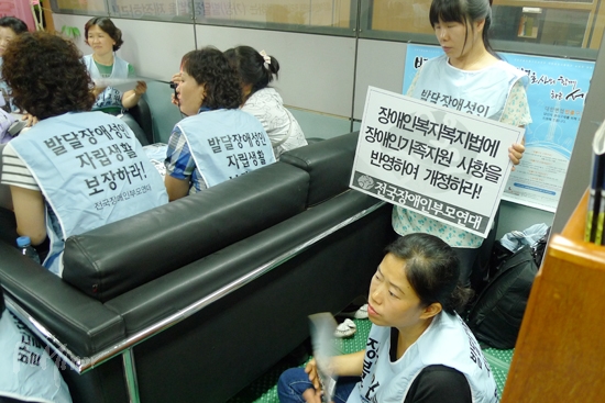 ![]() ▲전국장애인부모연대 회원들이 국가인권위원회 7층 인권상담센터를 점거하고 농성에 들어갔다. |
