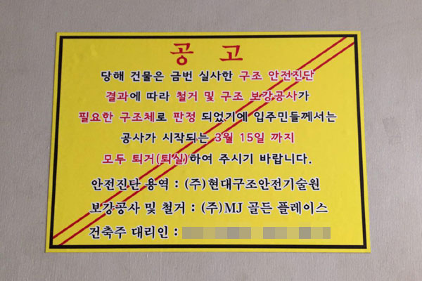 구조안전진단 결과 'D등급' 판정, 안전 위해 공사해야