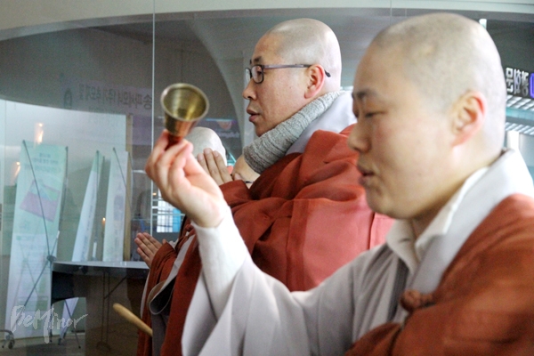 사진은 조계종 노동위원회 소속 스님들이 직접 추모의식을 진행하는 모습.