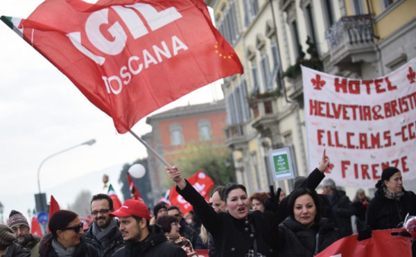 시대가 어느 시대인데 아직도 ‘총파업’이냐는 면박을 듣기도 하지만, 신기하게도 총파업은 현재까지 세계 곳곳에서 버젓이 일어나고 있다. 불과 세 달 전인 지난해 12월 12일, 이탈리아에서는 노동자 100만 명이 총파업을 벌였다. 마테오 렌치 사민주의 정부가 기업의 해고 요건을 완화하는 등의 노동법 개악안을 의회에서 통과시킨 까닭이다. 기업의 해고요건을 완화하고, 단체교섭권을 제한하려는 것은 이탈리아 정부나 한국정부나 다를 바가 없다.