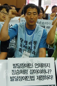 = 그전에는 아이는 엄마가 책임지면 된다고 생각했다. 나는 가정경제를 책임지면 된다는 생각이었다. 그러나 2005년 당시 천막농성에 참여하면서 다른 장애아 부모들이 부모로서 겪는 어려움을 얘기하는 걸 들었다. 24시간 아이에게 눈을 떼지 못해 겪는 어려움 등을 들으면서, 우리나라 장애인 가족현실이 이렇구나, 부모운동을 해야겠다라는 생각을 하게 됐다. 개인의 어려움이라고 치부해버릴 상황이 아니라는 것을 알게 된 것이다. 울산에서는 지난 1월부터 부모회 회장을 맡게 됐고, 전국장애인부모연대 공동대표를 맡고 있다.