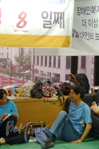 ![]() ▲농성장을 지키고 있는 전국장애인부모연대 회원들의 모습. |