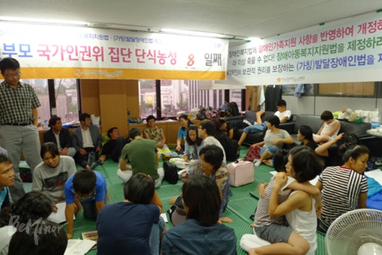 하지만 전국에 있는 장애아부모, 비장애아 부모들에게 호소하고 싶었다. 인권위는 모든 국민의 권리를 지켜주는 곳이지 않는가. 사실 여기에 있으면서도 늘 불안하다. 인권위를 찾는 다른 민원인들에게 피해를 주지는 않는가 하고. 하지만 여기서 더 물러날 곳이 없다.