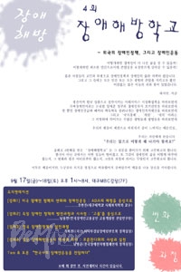 이번 장애해방학교는 '외국의 장애인정책, 그리고 장애인운동'을 주제로 오는 9월 17일부터 이틀간 대구 MBC 강당에서 열린다.