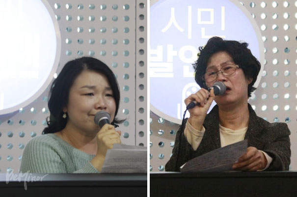 “사회를 한 번 보세요. 각 동마다, 백화점마다 문화센터라는 이름으로 얼마나 많은 국가 예산이 소요되고 있습니까. 거기선 4, 5명을 놓고도 수업 진행해요. 우리 아이들도 그러한 서비스가 필요합니다. (……) 우리 아이들도 균등하게 여가를 즐기고 건강하게 살아갈 기회를 제공받길 간절하게 바랍니다. 평생교육시설을 설치해 주십시오.” (박지영, 자폐성장애 2급인 15세 김하민의 어머니)