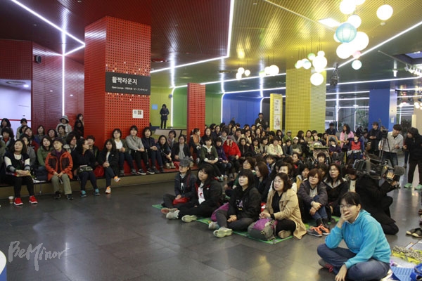 ![]() ▲‘고통증언대회’를 마친 200여 명의 사람들이 서울시청 로비를 점거했다. |