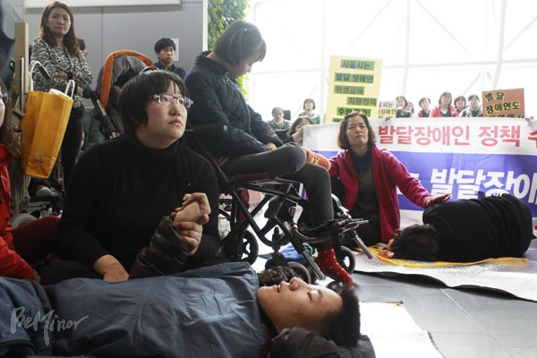 자녀 손잡고 나온 부모들, 서울시청에서 ‘고통 증언 대회’ 열어 발달장애성인에 대한 대책 요구하며 시청 바닥에서 첫날밤 보낸다