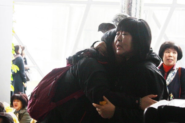 ![]() ▲한 어머니가 자녀를 껴안고 울고 있다. |