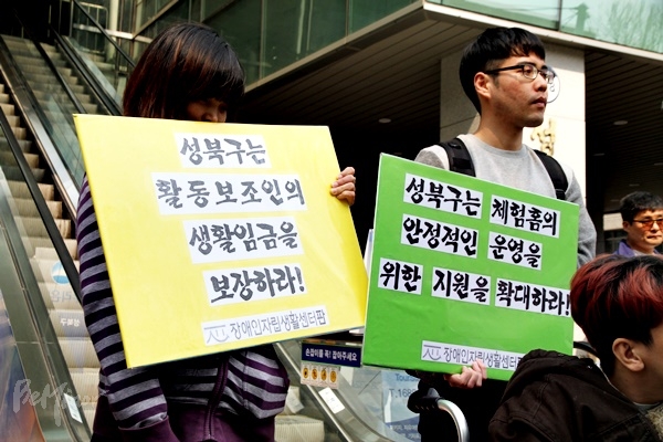 특히 성북네트워크는 활동보조인의 노동권, 생계 보장을 위해 활동보조인의 임금을 성북구 생활임금조례에 근거해 생활임금 수준으로 보장해줄 것을 촉구했다.