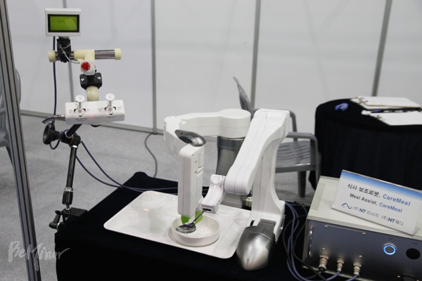 이 보조기기는 손을 쓰기 어려운 중증장애인의 식사를 돕는 로봇 '케어밀'이다. 집게손이 반찬이나 밥을 퍼 숟가락 위에 올리면, 숟가락이 이용자의 입 가까이 올라오는 식으로 구동된다. 이용자가 미리 식사 패턴을 로봇에 입력한 뒤, 조이스틱을 턱이나 뺨 등으로 움직여 로봇 팔을 움직이도록 할 수 있다.