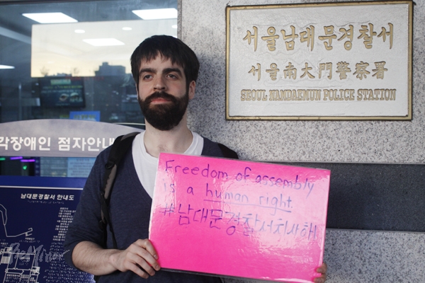 노숙 기간에 성소수자들은 SNS를 통해 남대문서를 비판하는 글과 사진을 게재하고 있으며, 이에 시민들과 외국인들도 남대문서 규탄 행동에 동참하고 있다. 이 사진은 지난 23일 성소수자를 지지하는 외국인이 남대문서 현판 앞에서 "집회의 자유는 인권이다"라는 피켓을 들고 있는 모습이다.