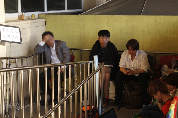 사진은 지난 23일 남대문서 집회신고 대기장소에서 대기 1순위인 보수 기독교 단체 회원(왼쪽), 다음 순위인 조직위 회원이 오는 29일 집회신고 시기를 기다리고 있는 모습이다. 오는 29일까지 퀴어 퍼레이드를 위해 집회신고하려는 성소수자와 이를 방해하기 위해 집회신고를 선점한 보수 기독교 단체 회원 사이에 불편한 동거는 계속될 전망이다.
