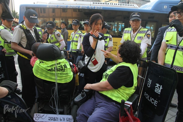 장애등급제·부양의무제 폐지 공동행동(아래 공동행동)은 광화문역 농성 1001일째인 지난 18일부터 출퇴근 시간에 주요 도로를 점거하는 방식의 집중 행동인 ‘95인의 그린라이트를 켜줘’를 진행하고 있다. 이러한 그린라이트 투쟁으로 이들은 매일 아침이나 저녁, 경찰과 차량운전자 등과 부단히 마찰을 빚고 있다.