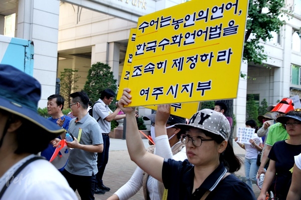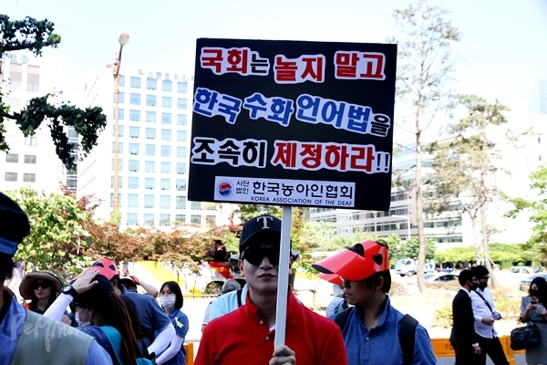 '농아인의 날'인 6월 3일, 전국의 농인들이 서울에 모여 수화언어법의 국회 처리를 촉구했다.