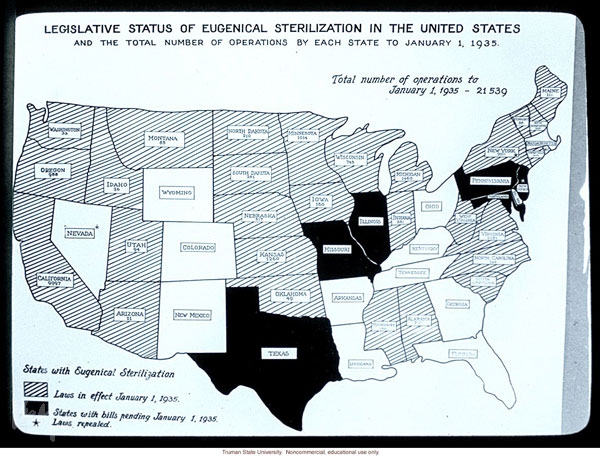 그러나 미국의 우생학 법률 중 가장 악명이 높은 것은 무엇보다도 단종법이라고 할 수 있을 것입니다. 미국의 단종법은 주마다 차이는 있었지만 발달장애인과 정신장애인을 비롯한 장애인, 유전성 질환자, 성범죄자와 성매매여성, 강력범죄자, 알코올중독자, 부랑자들, 심지어 어떤 주는 흑인과 아메리카 선주민들까지도 그 대상으로 하였습니다.