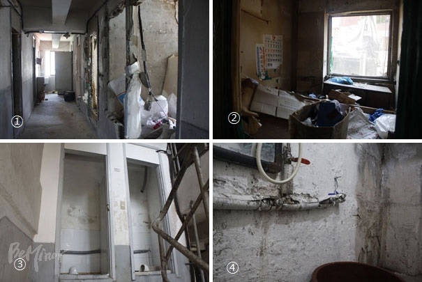 철거 공사는 5월 26일, 본격적으로 시작됐다. 층과 층 사이에 있던 화장실 문짝이, 사람이 나간 빈방의 문짝이 떼어져 나갔다. 층마다 한 개씩 있는 세면장의 수도꼭지도 떼어가서 수도도 사용할 수 없게 됐다. 쪽방 사람들에게 세면장은 빨래도 하고 쌀도 씻으며 세수도 하는 공간이었다.