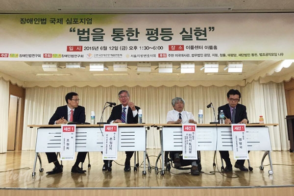 미국, 일본, 한국의 장애인법을 살펴보는 국제 심포지엄이 열렸다. 장애인법연구회는 ‘법을 통한 평등 실현’이라는 주제로 12일 서울 여의도 이룸센터에서 각 나라의 변호사를 초청하여 장애인법과 관련한 각국의 정책과 입법 과정을 나누고 실제 소송을 통한 장애인 권리 구제의 실태를 공유했다.