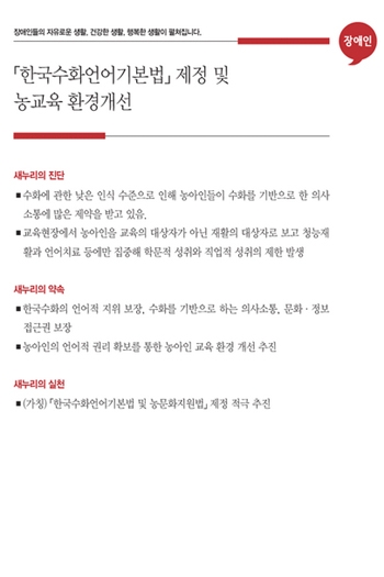 ![]() ▲박근혜 대통령 공약집에 수록된 수화언어법 제정 공약. |