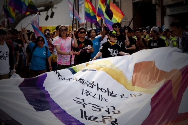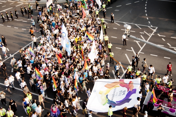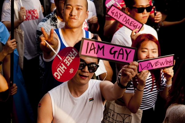 ![]() ▲'I AM GAY'(나는 게이) 'Love Wins'(사랑이 이긴다) 등 메시지가 적힌 작은 피켓을 들고 행진하는 사람들. ⓒ뉴스민 |