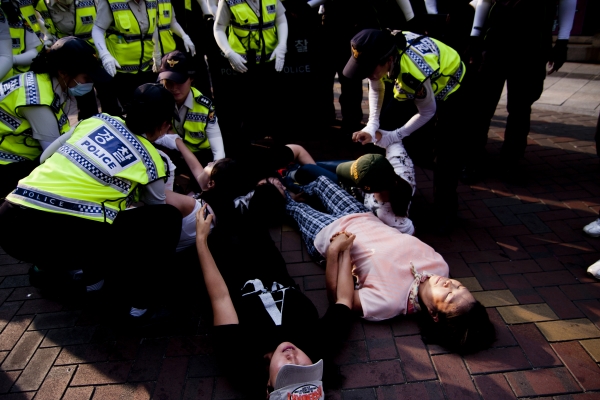 ![]() ▲손을 잡고 도로에 드러누운 기독교단체 여성 회원들을 여경들이 제지하는 모습. ⓒ뉴스민 |