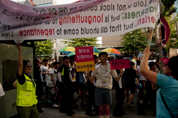 이날 기독교인의 집회에서 케네스(미국) 목사는 “미국의 동성결혼 합법화에 많은 미국인들이 동의하지 않는다. 그것은 민주주의의 결과”라며 “하지만 동성애는 사랑이 아니다. 그들이 잘못 알고있는 것이다. 우리가 진정한 사랑이 무엇인지 찾아야 한다”고 말했다.