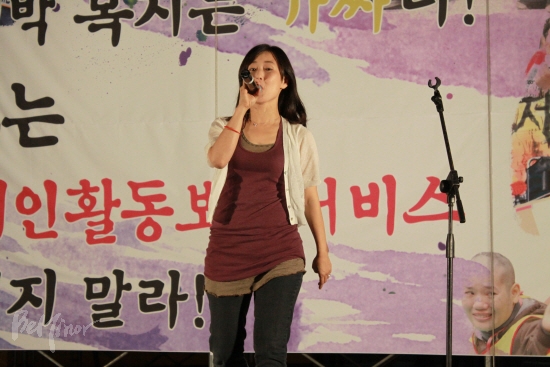 첫 주자로 나선 노동가수 지민주 씨는 "장애인 동지들과 힘차게 달려 장애해방을 맞이했으면 한다"라면서 '달리기', '길 그 끝에 서서' 등을 열창해 관객의 열띤 호응을 이끌어냈고, 앙코르곡으로 '아침이슬'을 불렀다. 지 씨는 "장애인 동지들은 나에게 언제나 에너지를 준다"라면서 "힘든 현실이지만 여러분이 있어 한 발 한 발 앞으로 나아가고 있다고 생각한다"라고 전했다.
