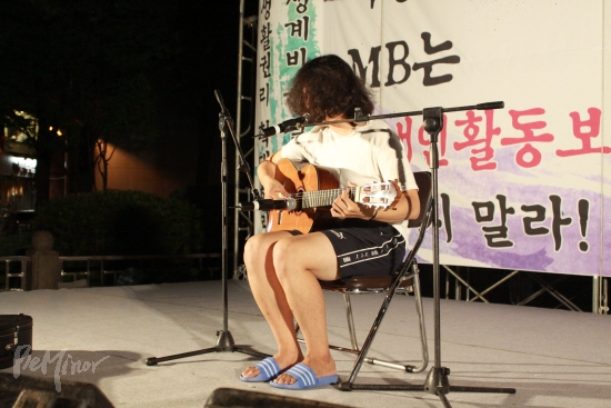 ![]() ▲ '오늘 나는'을 부르고 있는 자립음악가 회기동 단편선. |