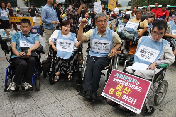 한국장애인자립생활센터협의회·전국활동보조인노동조합 등은 21일 2시 보신각에서 활동보조 권리 쟁취를 위한 집중 결의대회를 열었다.이들은 최저임금에도 못 미치는 수가, 복지재정 효율화라는 이름으로 축소되고 있는 활동보조 시간 등 활동보조 권리를 짓밟는 박근혜 정부에 맞서 끝장 투쟁을 벌이기로 결의했다.