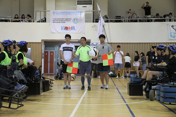 ![]() ▲전동휠체어 축구대회 이벤트 경기 시작 장면. |