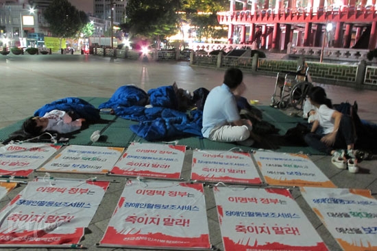 전장연, 보신각 앞 활동보조살리기 노숙농성 7일째