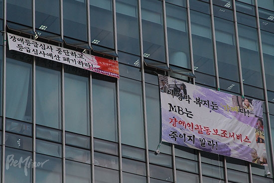 장애등급 폐지 등을 요구하며 활동보조살리기 노숙농성을 벌이던 중증장애인들이 장애심사센터에서 무기한 단식농성에 돌입했다.