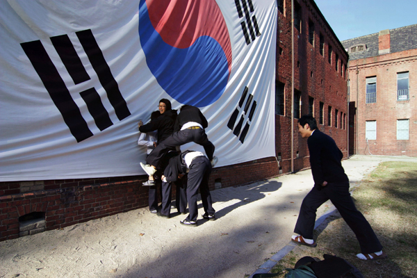길을 걷다가도 오후 5시가 되면 어김없이 애국가 소리에 맞춰 국기에 대한 맹세를 해야만 했던 시절이 있었습니다. 다투던 아이들도 싸움을 멈추고 경건한 마음으로 손을 가슴에 얹어야 했습니다. 그 순간만큼 시간은 정지되고 모든 것은 멈추어야 했습니다. 애국가가 끝나면 다시 각자의 길을 걸었고 중단된 싸움도 시작되었습니다. 아무생각 없던 시절이야기입니다.