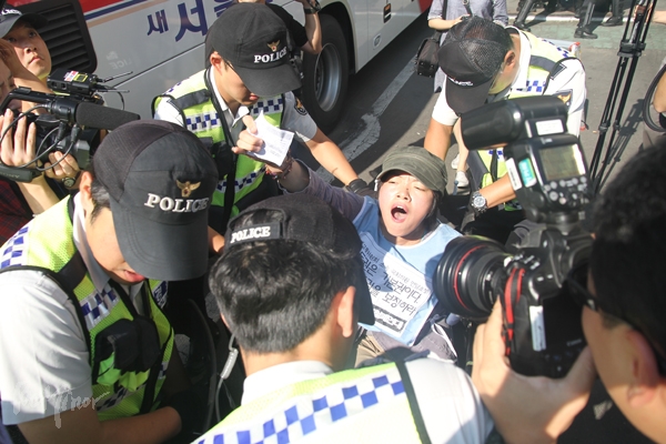 이날 장애인들은 미리 예매한 버스표를 들고 탑승을 시도했으나, 경찰이 제지해 곳곳에서 충돌을 빚었다. 이들은 다음날까지 계속해서 현장 발매를 하며 버스 타기를 시도한다는 계획이다.