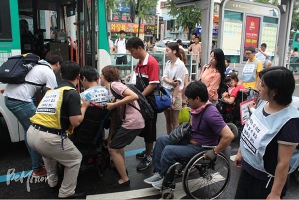 앞서 경기장차연은 집회를 통해 △2016년부터 대폐차 차량 전체에 대한 저상화를 통해 저상버스 100%도입 △특별교통수단 200% 도입 및 광역이동지원센터 설치 △장애인 이동권 보장을 위한 종합계획 수립 △교통약자 전담부서 설치 등을 요구했다.