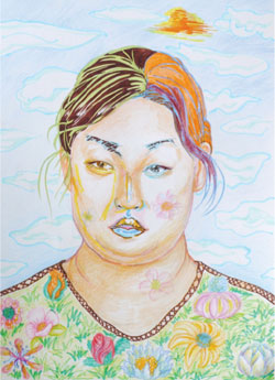 기순 씨 그림에는 이렇게 ‘이야기’가 달려있는 게 여럿 있다. 자기가 그린 그림 속의 여인들이 자신의 삶을 들려준다는 발상이 무척 흥미롭다. 화려한 패션의 ‘쎈 언니’들이 들려주는 이야기는 그야말로 ‘드라마틱’하다. 기순 씨가 즐겨 그리는 ‘쎈 언니’들은 기순 씨의 전도된 자화상 같다. 자기에게는 없는 마르고, 화려하고, 드라마틱한 스타일이 그녀의 그림에 일관성을 준다. 그런 스타일은 다른 사람을 그릴 때도 나타난다. ‘로사이드’가 북부시립병원에서 한 ‘함께 그리는 풍경’이란 프로젝트에서 기순 씨는 환자들의 옷과 배경을 화려하게 바꿔 그렸다.