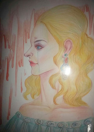 기순 씨의 그림은 화려하다. 과할 정도로 화려하고 다양한 색깔을 사용한다. 세월호 사건을 접하고 그렸다는 세월호 연작을 보고 깜짝 놀랐다. 세월호에 관한 그림들을 많이 봤지만 이런 그림은 처음이다. ‘이렇게 그려도 되나? 슬픔을 이렇게 화려한 색감으로 표현해도 되나? 감히 노란 리본을 패션 소품처럼 활용하다니...’라는 생각이 잠깐 들었지만 다시 보니, 그 화려한 색감 속에 기순 씨의 슬픔이 전해지는 것 같다. 더할 수 없이 화려하고 강렬한 슬픔이다. 그녀의 특이한 정신세계가 통념을 깨는 예술적 감성으로 전해진다고 할까. 세월호 연작과 묘한 긴장을 일으키는 ‘죽음 직전의 마리 앙투아네트’에는 이런 이야기가 첨부되어 있다.