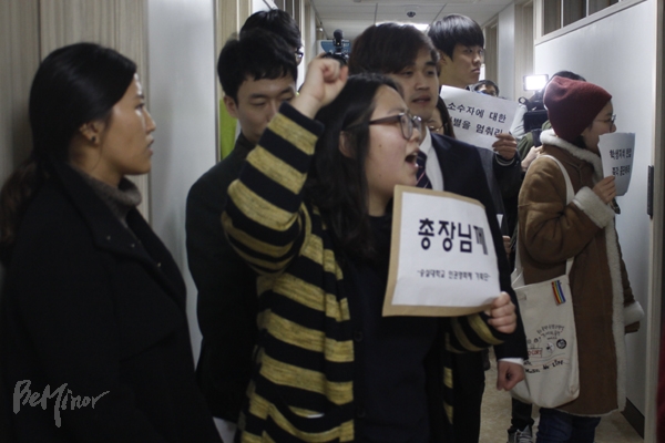 기자회견을 마친 후 기획단을 비롯한 참석자들은 "소수자에 대한 차별을 멈춰라. 학생자치 탄압 즉각 중단하라"고 구호를 외치며 총장실에 항의 방문을 이어 나갔다. 그러나 도착한 총장실은 이미 불이 꺼져있었으며 기획단이 요구한 면담은 이루어지지 못했다.