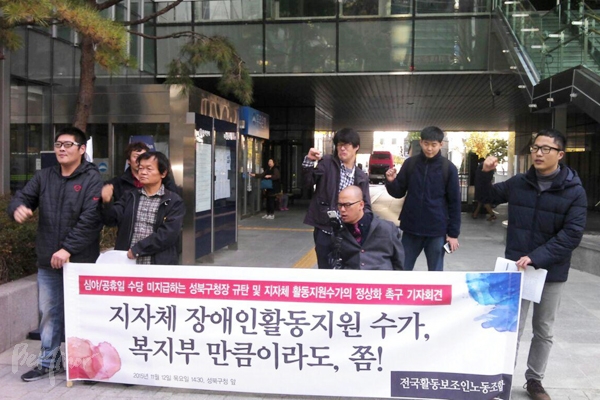 이에 활보노조는 기초 지자체의 활동지원 수가를 최소 복지부 수준 이상으로 인상하고 심야, 공휴일 수당을 지급할 것을 촉구하는 활동을 개시했다. 그 시작으로 12일 오후 2시 30분 성북구청 앞에서 기자회견을 열었다.