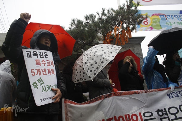 이에 장애인부모단체는 29일 성일중학교 앞에서 설립 촉구 결의대회를 열었다. 장애인부모 단체들은 발달장애인을 위험한 사람으로 모는 편견을 중단하고 지역사회에서 함께 살아가자고 지역주민들에게 거듭 호소했다.