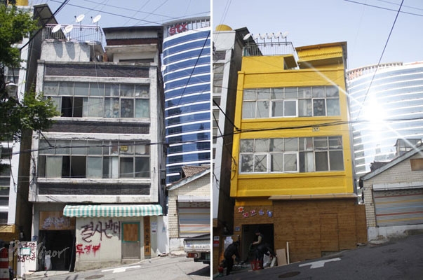 ![]() ▲(왼쪽) 7월, 철거가 진행되고 있던 9-20 건물. (오른쪽) 최근 리모델링 공사를 마친 동자동 9-20 건물. |