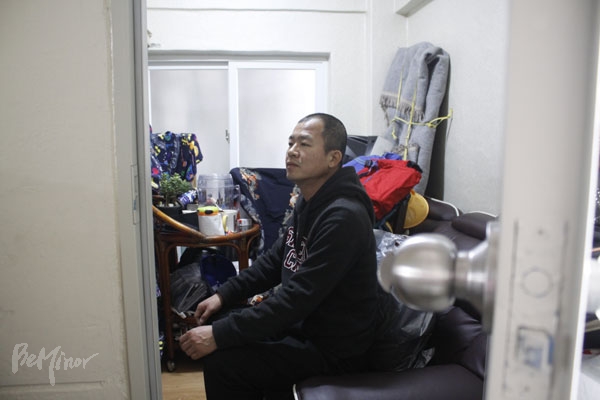 그는 9-20에 들어오기 전엔 친누나와 같이 살다가 누나 집을 나와선 서울역에서 노숙했다. 노숙인을 지원해주는 ‘다시서기 종합지원센터’를 통해 기초생활수급자가 되면서 쪽방으로 흘러들어왔다. 그러면서 임대아파트 신청도 할 수 있었다. 그러나 아직 언제, 어디로 갈지는 모른다. 당첨은 됐지만 입주 순서를 기다려야 하기 때문이다. 하지만 어디로 가든 외로울 테니 이곳에 자주 놀러 올 예정이다. 무엇보다 ‘새꿈공원 자율방범대’의 방범대원 활동을 이어나가야 한다. 새꿈공원 자율방범대는 올해 용궁지구대가 동자동 쪽방 주민과 함께 만든 자율방범대로 동자동 9-20 앞 새꿈어린이공원에 그 초소를 두고 있다.
